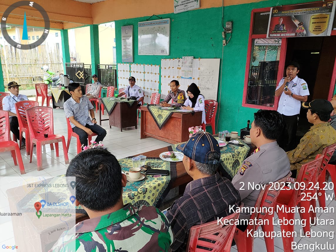 Hadir dalam kegiatan tersebut, Kapolsek Lebong Utara Iptu M Subkhan, Kasi PMD dan Staf Kecamatan Lebong Utara, Pendamping Desa, Pjs Kades, Bhabinkamtibmas, Babinsa, anggota BPD, dan warga desa setempat.