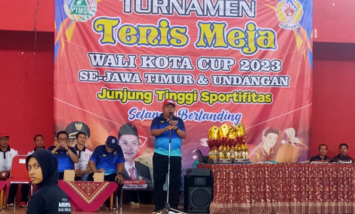Walikota Blitar Santoso dalam sambutannya, menyampaikan terima kasih semua pihak atas partisipasi dan dukungannya termasuk para atlet, momentum penyelenggaraan turnamen tenis meja ini bisa menjadi ajang silaturahmi sesama para atlet dari berbagai daerah.