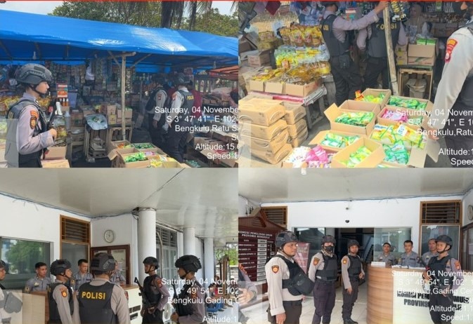 Personel Sat Samapta Polresta Bengkulu Patroli Mobiling, Sasar Pasar dan Posko OMB KPU Provinsi