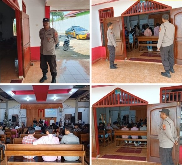 Bengkulu – Personel Polsek Muara Bangkahulu Polresta Bengkulu Polda Bengkulu, melaksanakan pengamanan dan monitoring kegiatan Ibadah di Gereja Pante Kosta Medan Baru Kota Bengkulu, Minggu (05/11/2023) pagi.
