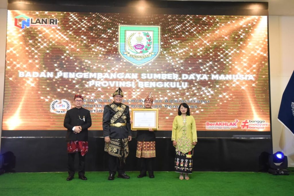 Penjelasan Kepala Badan Pengembangan Sumber Daya Manusia Provinsi Bengkulu Soemarno, penghargaan yang diterima ini berdasarkan penilaian yang dilakukan LAN RI pada April lalu.