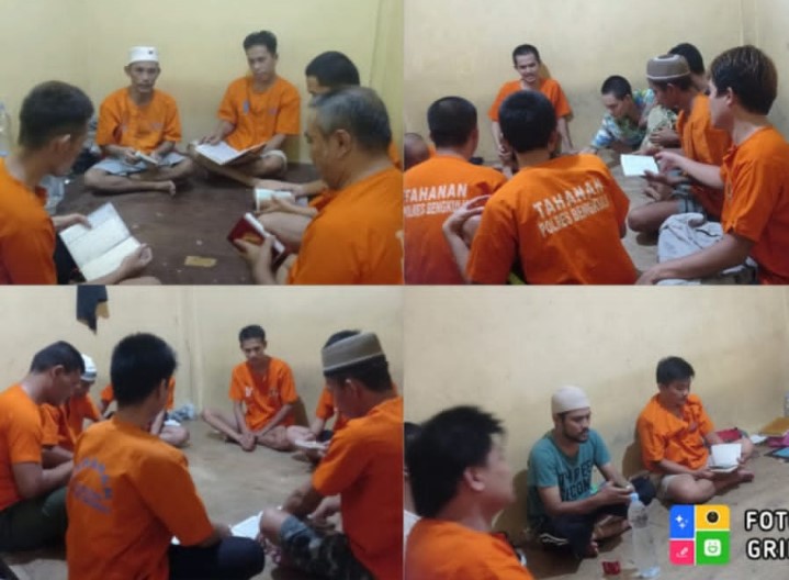 Bengkulu – Polresta Bengkulu Polda Bengkulu terus giat melaksankan Pembinaan Rohani dan Mental (Binrohtal) secara rutin kepada para tahanan Polresta Bengkulu.