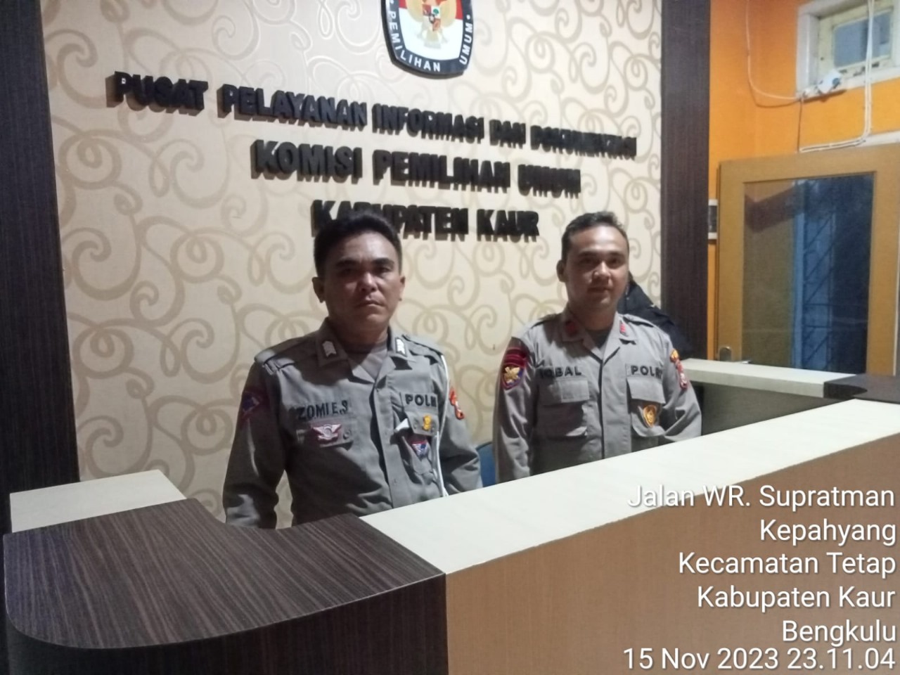 kegiatan Sistem Pengamanan Kantor KPUD Kabupaten Kaurdilakukan oleh Personel Polres Kaur Rabu, (15/11/2023) Pukul 08.00 WIB s/d 08.00 WIB.
