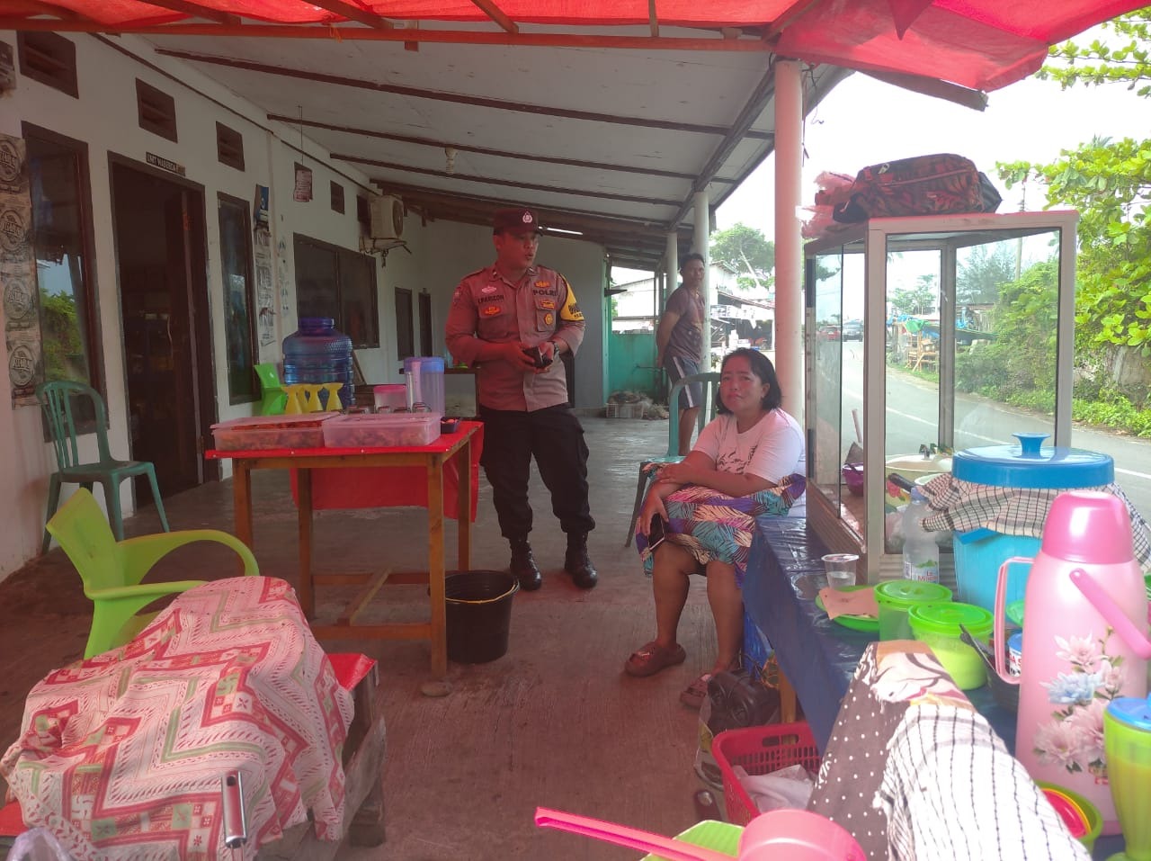 Dalam sambang dialogis tersebut Aipda Istin Farizon S.H., menyampaikan imbauan kepada warga binaan, pedagang dan wisatawan Pantai Pasar Bawah untuk selalu waspada dan berhati-hati dalam menjaga anak anak jangan sampai lepas dari pengawasan serta berhati-hati dalam menjaga kendaraan nya.