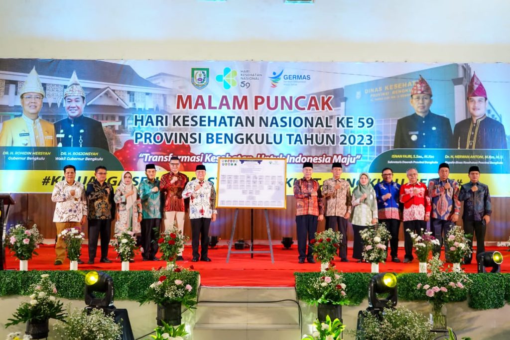 “Tranformasi pelayanan kesehatan sebagai tonggak perbaikan masyarakat mendapatkan pelayanan kesehatan yang baik, apalagi ditunjang pencapaian UHC sudah mencapai 98%. Sehingga dengan situasi tersebut tidak ada lagi alasan masyarakat tidak mendapatkan pelayanan kesehatan yang baik,” ujar Gubernur Rohidin saat sambutan pada malam puncak Hari Kesehatan Nasional (HKN) ke-59 Provinsi Bengkulu tahun 2023 di Auditorium Poltekes Kemenkes Padang Harapan, Kamis (16/11/2023).