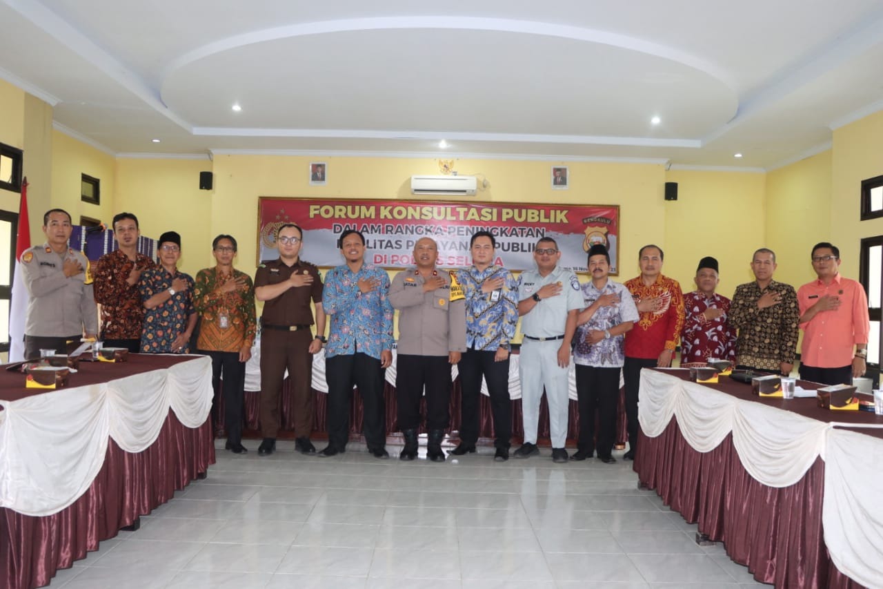 Seluma – Pada hari Kamis (16/11/2023) pukul 09.00 WIB bertempat di Aula Endra Dharmalaksana Polres Seluma Polda Bengkulu telah berlangsung kegiatan Forum Konsultasi Publik dalam rangka Peningkatan Kualitas Pelayanan Publik di Polres Seluma.