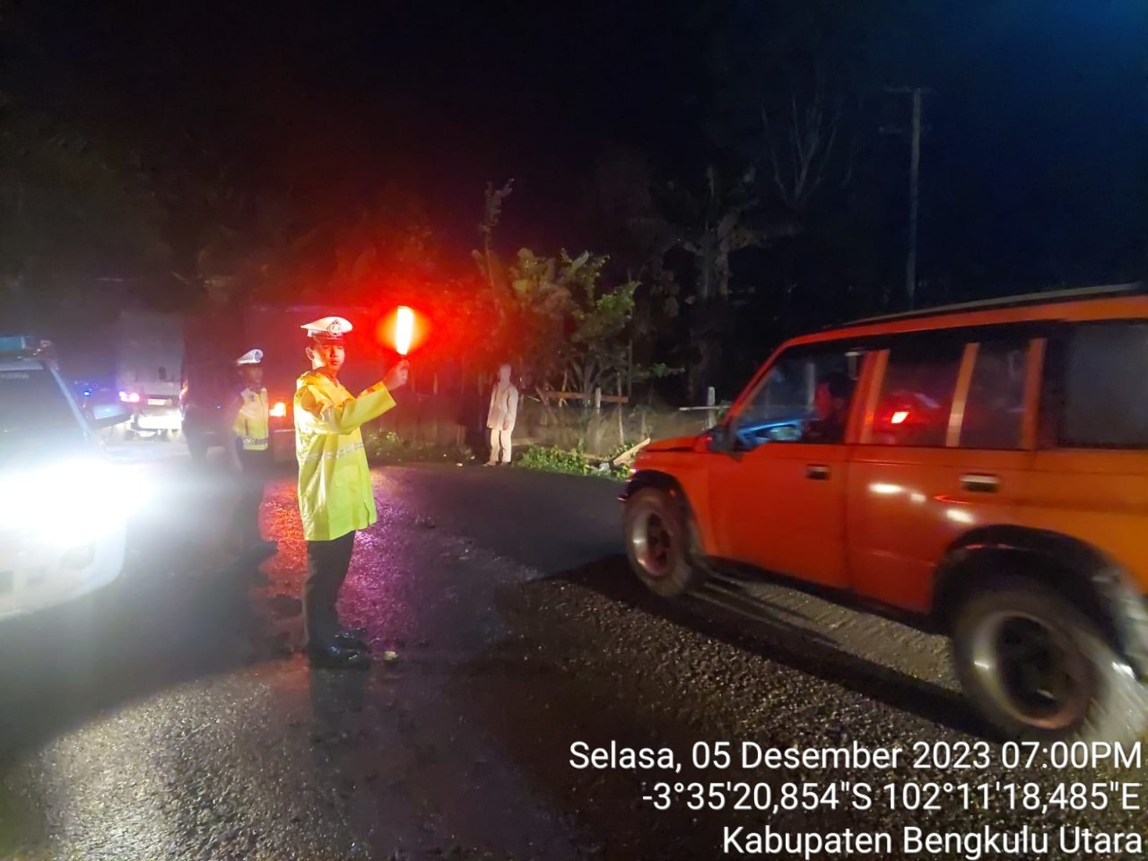 Personil Satuan Lalu Lintas (Satlantas) Polres Bengkulu Utara yang mendapatkan informasi segera menuju ke lokasi kejadian untuk melakukan pengamanan dan pengaturan lalu lintas. Sesampainya di lokasi, personil Satlantas langsung lalu lintas agar tidak terjadi kemacetan yang lebih parah.Pengemudi Mobil dump truck hino dengan plat polisi No.Pol. BD-8477-IU mengalami luka ringan dan langsung dilarikan ke rumah sakit terdekat.Personel Sat Lantas Polres Bengkulu Utara mengimbau kepada para pengguna jalan untuk berhati-hati dalam berkendara dan mematuhi rambu-rambu lalu lintas.Kemacetan mulai terurai hingga selesainya evakuasi yang dilakukan di malam hari dengan kondisi jalan yang basah karena cuaca gerimis. “Mengingat sedang dalam musim penghujan, kami mengimbau kepada para pengguna jalan untuk berhati-hati dalam berkendara dan mematuhi rambu-rambu lalu lintas,” kata Kasat Lantas Polres Bengkulu Utara, IPTU Ayu Sekar Sari Kuraisin, S.Tr.K., S.I.K.