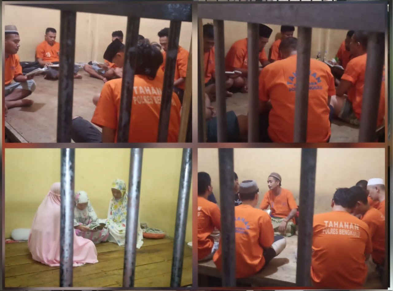 Bengkulu – Kamis malam Jumat (07/12/2023), Polresta Bengkulu Polda Bengkulu melaksankan Pembinaan Rohani dan Mental (Binrohtal) kepada para tahanan Polresta Bengkulu.