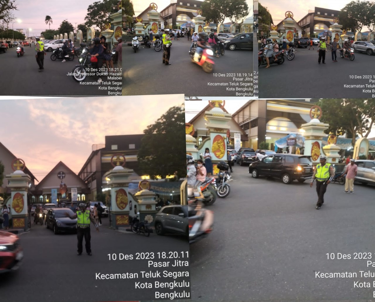 Bengkulu – Personel Sat Lantas Polresta Bengkulu Polda Bengkulu, melaksanakan kegiatan Pam Turlalin Ibadah Misa di Gereja St Yohanes Penginjil Bengkulu di Jalan Prof. Dr Hazairin S.H., Minggu (10/12/2023) sore.