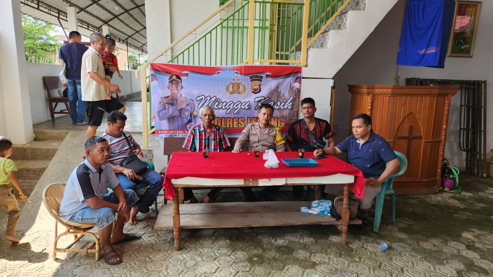 Adapun, personel yang melaksanakan Minggu Kasih adalah PS Paur Mintu Satres Narkoba Polres Lbeong Bripka AJ Sembiring, Bhabinkamtibmas Polsek Lebong Utara Aipda Heri Purwanta, dan dihadiri oleh Pendeta Sanyoto, para tokoh agama dan jemaat gereja setempat.