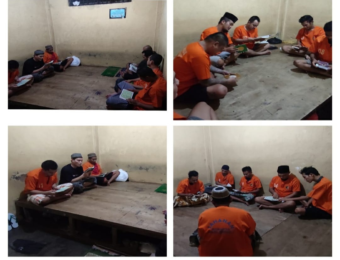 Bengkulu – Minggu malam Senin (10/12/2023), Polresta Bengkulu Polda Bengkulu melaksankan Pembinaan Rohani dan Mental (Binrohtal) kepada para tahanan Polresta Bengkulu. Pada Binrohtal kali ini para tahanan melaksankan tadarusan membaca yasin dan surah lainnya yang dipimpin oleh Piket jaga tahanan. Kapolresta Bengkulu Kombes Pol Aris Sulistiyono melalui Kasat Tahti Polresta Bengkulu Iptu Redi Mursalin menuturkan, kegiatan tadarusan membaca Surah yasin dan surah lain yang ada dalam Alquran dimaksudkan untuk meningkatkan keimanan dan ketaqwaan tahanan yang ada dalam RTP Polresta Bengkulu. “Pembinaan ini berkaitan dengan pembinaan rohani dan mental bagi para tersangka yang beragama islam, yaitu dengan cara memberikan nasehat agama kepada mereka untuk lebih meningkatkan keimanan agar para tahana terbuka hatinya untuk tidak melakukannya lagi perbuatan melanggar hukum yang pernah dibuatnya,” katanya. Kasat tahti menjelaskan kegiatan binrohtal dengan tadarusan dan membaca surat yasianan ini rtin dilakukan oleh tahanan polresta Bengkulu.