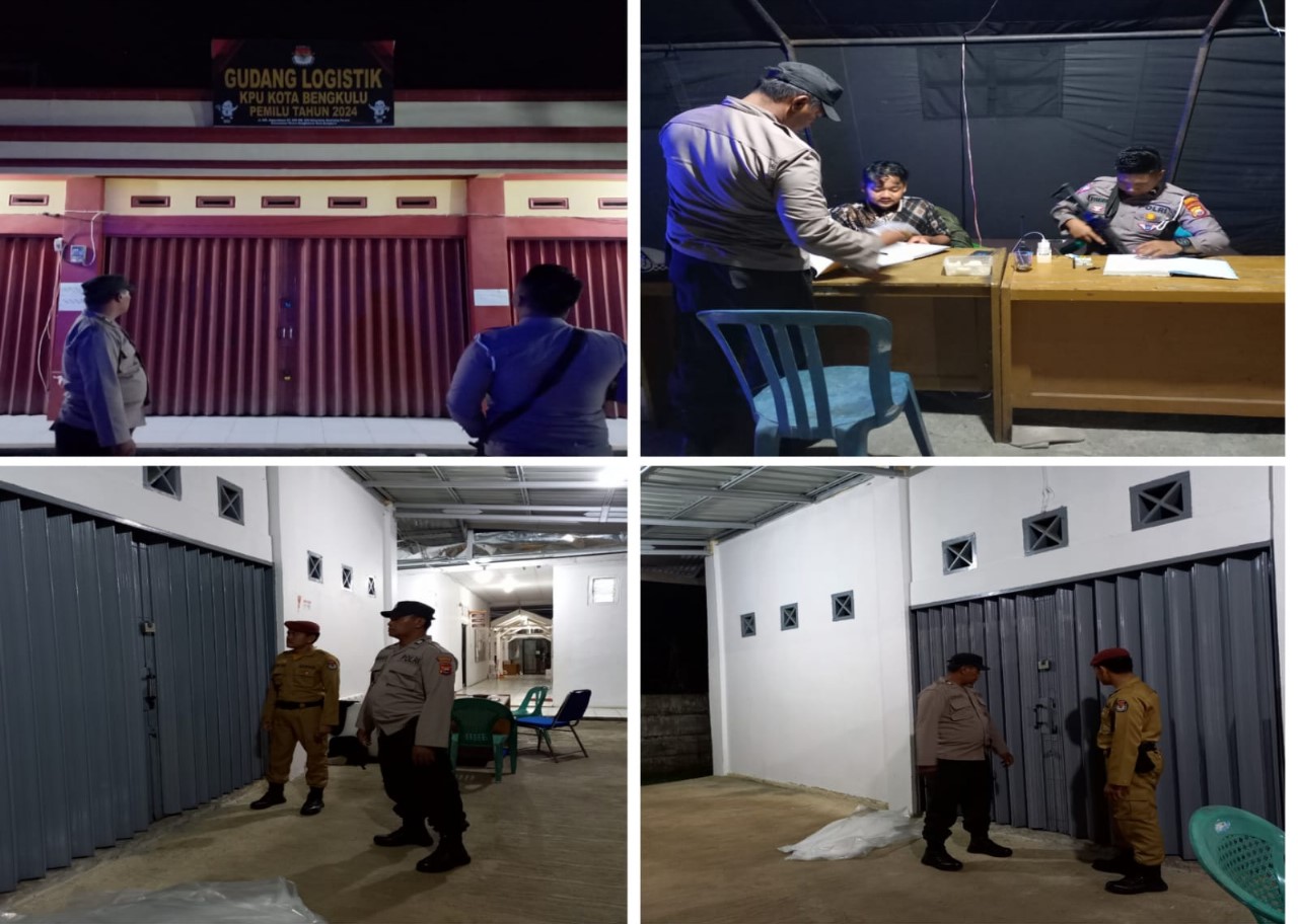 Personel Polsek Muara Bangkahulu Patroli di Kantor KPU dan Gudang Logistik Cegah Kejahatan 3C
