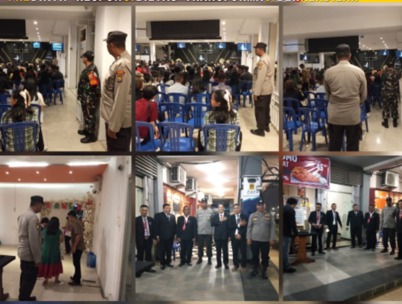 Bengkulu – Personel Polsek Ratu Samban Polresta Bengkulu Polda Bengkulu melaksanakan kegiatan pengamanan ibadah dalam rangka perayaan Natal tahun 2023 di GBI Rayon 13 Sariwangi Bengkulu, Jalan Suprapto Kelurahan Kebun Geran Kecamatan Ratu Samban Kota Bengkulu, Senin (18/12/2023).
