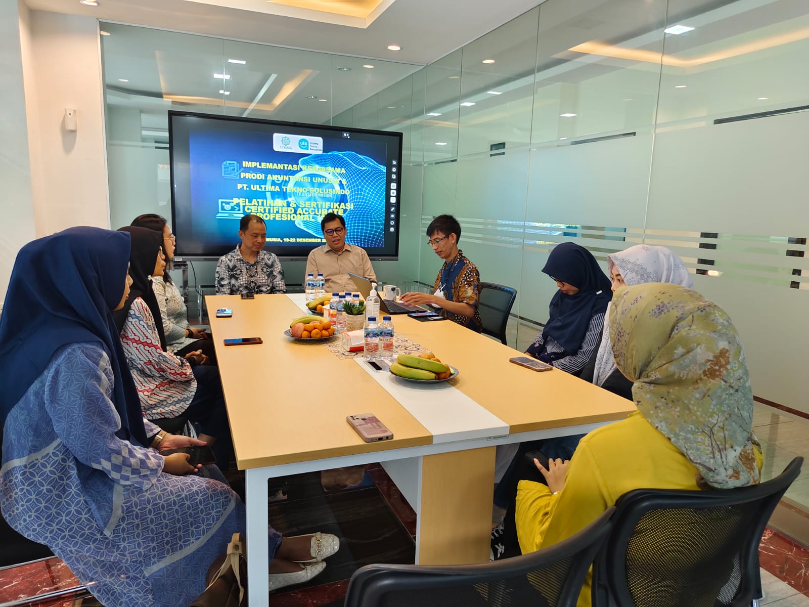 Prodi Akuntansi berkomitmen untuk meningkatkan kinerja dibidang pendidikan, penelitian, pengabdian kepada masyarakat dan Sumber Daya Manusia (SDM) kepada dosen, mahasiswa dan pengelola keuangan Perguruan Tinggi (PT).Implementasi kerjasama dilakukan melalui pelatihan dan sertifikasi CAP untuk dosen, pengelola keuangan dan mahasiswa. Kegiatan dilaksanakan mulai tanggal 19-22 Desember 2023 dengan menghadirkan profesional Accurate dari PT Ultima Tekno Solusindo.Kegiatan dibuka langsung oleh Dekan FEB Taufik Hidayadi di Ruang Rapat Rektorat Unusia. Beliau mengapresiasi inisiasi yang dilakukan oleh Prodi Akuntansi. “Kerjasama yang dilakukan oleh Prodi Akuntansi dengan PT Ultima Tekno Solusindo adalah komitmen untuk meningkatkan tatakelola Prodi untuk mencapai Tri Darma Perguruan Tinggi. Kami dari Dekanat FEB mengapresiasi upaya-upaya yang dilakukan untuk meningkatkan kapasitas SDM, khusus pengajar di Prodi Akuntansi”. 19/12/23.Selain itu, pelatihan dan sertifikasi ini juga melibatkan mahasiswa untuk mendapatkan Sertifikat Kompetensi Pendamping Ijazah (SKPI). Tentu ini akan meningkatkan kompetensi mahasiswa dan akan memiliki daya saing jika sudah menjadi alumni nantinya, ini adalah mahasiswa untuk mengakses lapangan pekerjaan yang semakin kompetitif, terangnya.Direktur PT Ultima Tekno Solusindo Rinaldi Pramudito juga mengapresiasi atas kerjasama yang terjalin dengan Unusia melalui Prodi Akuntansi. “Implementasi kerjasama ini adalah awal untuk meningkatkan kerjasama antara PT Ultima Tekno Solusindo dan Unusia. Kedepannya, kami berharap bisa berkolaborasi diberbagai bidang, khususnya pengembangan Accurate sebagai Sistem Informasi Akuntansi yang dapat menjadi solusi bagi institusi baik konvensional maupun instansi pendidikan” ungkapnya.Menurut Ketua Prodi Akuntansi Muhammad Aras Prabowo bahwa kerjasama ini bisa kita kembang lebih luas lagi. “Unusia ini lembaga di bawah Nahdlatul Ulama (NU) yang memiliki entitas pesantren yang sangat banyak di Indonesia. Prodi Akuntansi dan PT Ultima Tekno Solusindo bisa kolaborasi dalam merumuskan Sistem Informasi Akuntansi Pesantren yang dibutuhkan oleh seluruh pesantren di bawah NU”Kegiatan pelatihan dan sertifikasi CAP dilakukan di laboratorium akuntansi Unusia, yang akan berlangsung selama empat hari. Seluruh peserta nantinya akan mengikuti ujia sertifikasi dan mendapatkan gelar non akademik CAP, jelas Habsyah Fitri Aryani selaku Sekretaris Prodi Akuntansi Unusia. “Dengan kerjasama ini, Prodi Akuntansi Unusia akan menggunakan software akuntansi yang berlisensi dalam matakuliah komputerisasi akuntansi. Nanti setiap mahasiswa yang mengikuti matakuliah komputerisasi akuntansi, akan diikuti dalam ujian sertifikasi CAP dan akan mendapatkan gelar non akademik” pangkasnya.Kedepannya, seluruh mahasiswa akuntansi akan mendapatkan dua gelar setelah alumni dari Unusia, yaitu sarjana akuntansi sebagai gelar akademik dan CAP sebagai gelar non akademik. Dengan seperti itu, alumni akuntansi Unusia akan memiliki keahlian yang lebih dari alumni universitas lainnya dan akan diperhitungkan dalam dunia korporasi, tutup Aras.