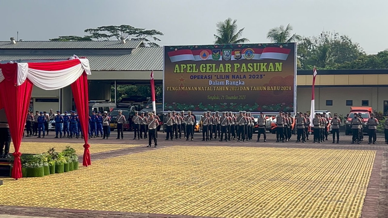 Persiapan Pengamanan Nataru, Personel Polresta Bengkulu Ikuti Apel Gelaran Pasukan Operasi Lilin Nala