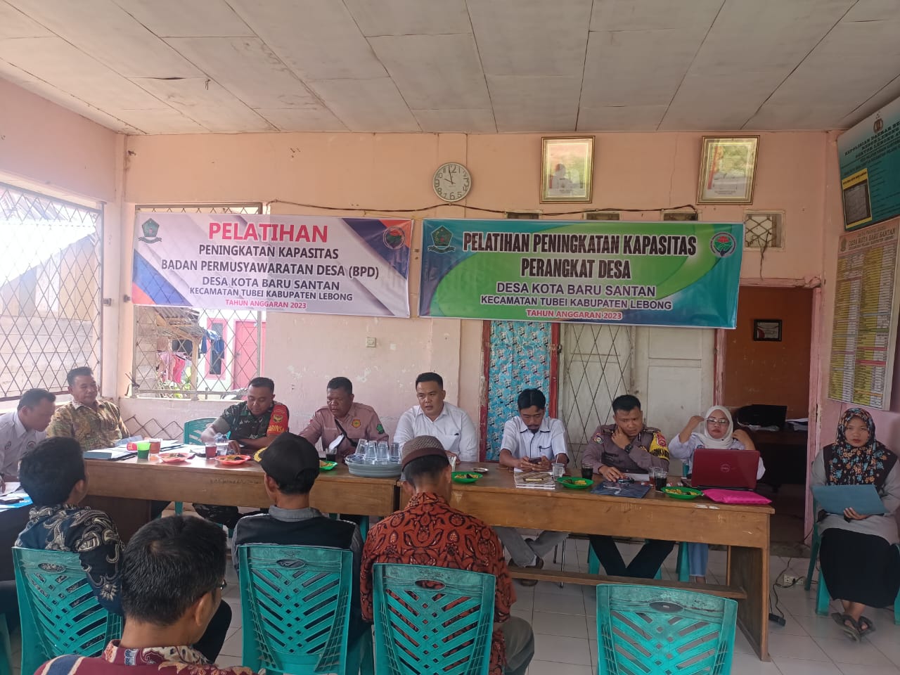 Lebong – Bhabinkamtibmas Polsek Lebong Atas Polres Lebong Polda Bengkulu, Bripka Novriansyah, menghadiri kegiatan Pelatihan Peningkatan Kapasitas BPD tahun anggaran 2023, di Desa Kota Baru Santan Kecamatan Tubei Kabupaten Lebong, Rabu (27/12/2023).