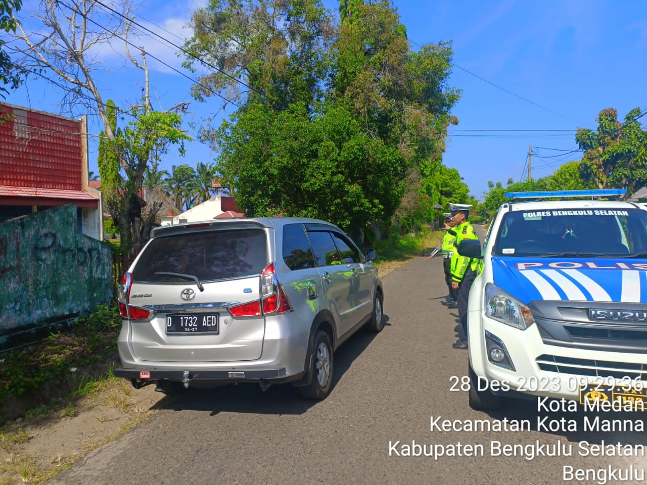 Bengkulu Selatan – Sat Lantas Polres Bengkulu Selatan Polda Bengkulu, melaksanakan Patroli presisi ke kantor KPU, gudang KPU dan Bawaslu serta Turlalin seputaran Kantor penyelenggara Pemilu Serentak Tahun 2024, adalah bentuk Pelayanan Polri kepada masyarakat guna mewujudkan Kamseltibcar lantas selama tahapan Kampanye pemilu 2024, di Wilayah Hukum Polres Bengkulu Selatan Polda Bengkulu, pada Kamis (28/12/23).