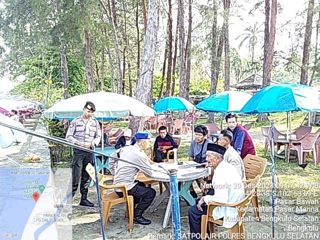Bengkulu Selatan – Guna memastikan situasi Kamtibmas yang Kondusif wilayah perairan terjaga dan tetap Kondusif   , Personel  Polairud Polres Bengkulu Selatan yang terlibat dalam Operasi Mantap Brata (OMB), melakukan Patroli perairan wilayah perairan Pantai Pasar Bawah Manna Bengkulu Selatan, Jumat (29/12/2023). Patroli perairan wilayah Pantai Pasar Bawah Manna Bengkulu Selatan tersebut rutin dilaksanakan oleh Subsatgas Polairud  Polres Bengkulu Selatan yang tergabung dalam Satgas Banops Ops Mantap Brata Nala 2023-2024. Kegiatan ini dilakukan guna mendukung agar terwujudnya situasi Kamtibmas yang Kondusif menjelang Pemilu Serentak Tahun 2024 di Kabupaten Bengkulu Selatan. Kapolres Bengkulu Selatan AKBP Florentus Situngkir S.I.K., melalui Kasat Polairud Iptu Solihin mengatakan, bahwa patroli perairan ini dilakukan dalam rangka menjelang Tahun Baru 2024 dan Operasi Mantap Brata 2023-2024, guna mewujudkan Situasi kamtibmas yang kondusif khusunya menjelang Pemilu Serentak Tahun 2024. “Patroli perairan ini dilakukan dalam rangka menjelang Tahun baru 2024 dan Operasi Mantap Brata 2023-2024, guna mewujudkan Situasi kamtibmas yang kondusif khususnya menjelang Pemilu Serentak Tahun 2024” ujar Iptu Solihin. “Dengan patroli ini, kita ingin memastikan bahwa situasi perairan wilayah Bengkulu Selatan benar benar Kondusif, dan juga memberikan pelayanan terbaik kepada masyarakat dan negara demi mensukseskan rangkaian tahapan pelaksanaan pemilu, Agar kegiatan  berjalan dengan aman dan lancar,” pungkas Kasat Polairud.