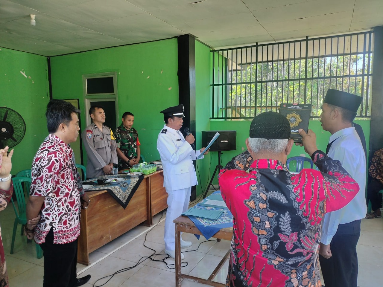 Bengkulu Utara – Kapolsek Lais Iptu Sukamto yang diwakili oleh Bhabinkamtibmas Aipda Fedi Aften menghadiri acara pelantikan perangkat desa Balam kec. Air Padang kab. Bengkulu Utara pada hari Kamis (28/12/2023) pagi. Acara pelantikan yang digelar di kantor desa Balam ini turut dhadiri camat Air Padang, Suryansah, S.Pd., Danramil Lais yang diwakili oleh Babinsa Serda Rocky C., kepala desa Balam, Amrun Zen, beserta perangkat pemerintah desa Balam, ketua BPD Balam beserta anggota BPD, dan warga desa Balam kec. Air Padang kab. Bengkulu Utara. Pada acara ini, kepala desa Balam melantik dan mengambil sumpah jabatan perangkat desa Balam, yaitu Merlena sebagai Sekretaris Desa Balam, Sifri sebagai kepala dusun 3 desa Balam, Reko Hendri sebagai Kaur Keuangan desa Balam dan Helsi Dwi Permata sebagai Kaur Umum desa Balam. Para penjabat yang baru dilantik ini merupakan hasil dari penyaringan calon perangkat desa yang dilakukan beberapa hari sebelumnya yang proses penyaringannya dilaksanakan oleh panitia seleksi pemilihan perangkat desa. Dalam sambutannya selaku mewakili Kapolsek Lais, Bhabimkamtibmas Aipda Fedi Aften menyampaikan harapan agar perangkat desa yang baru dilantik segera memyesuaikan diri dengan kegiatan pemerintaham desa Balam, diharapkan agar dapat membantu kepala desa Balam dalam menjalankan roda pemerintah. Tidak lupa Bhabinkamtibmas Aipda Fedi Aften memyampaikan agar bersama menjaga kondusivitas keamanan dalam.masa tahapan Pemilu 2024 ini.