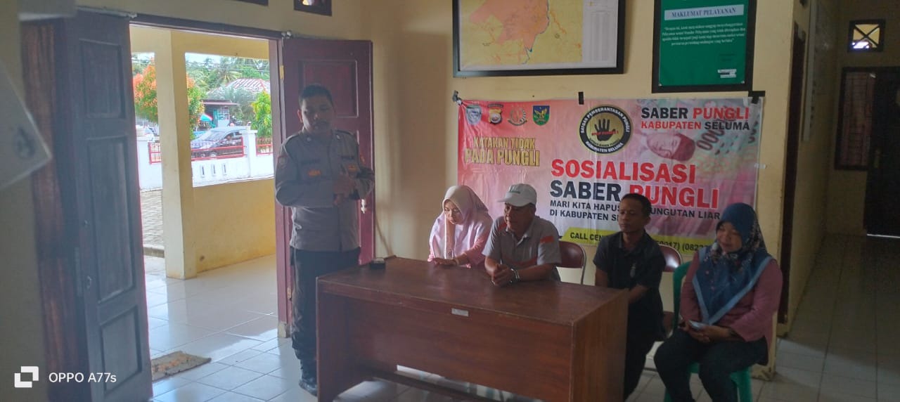 Seluma – Kamis (04/01/2024) bertempat di Kantor Kecamatan Seluma dan Kelurahan Pasar Tais Kecamatan Seluma Kabupaten Seluma, Personel Sat Binmas Polres Seluma Polda Bengkulu Aiptu Ratmono melaksankan penyuluhan atau sosialisasi Saber Pungli. Sat Binmas Polres Seluma memberikan Sosialisasi tentang Saber Pungli kepada para pegawai kecamatan dan kelurahan yang melaksanakan pelayanan publik agar tidak melakukan praktek pungli dalam melayani masyarakat. Personel Sat Binmas juga memberikan imbauan kepada masyarakat agar melaksanakan Pemilu 2024 secara damai walaupun nantinya berbeda pilhan baik itu pilihan partai atau presidan nantinya. Personel Binmas Polres Seluma juga memberikan pembinaan tentang antisipasi terhadap kejahatan konvensional yaitu kejahatan terhadap jiwa, harta benda, dan kehormatan yang menimbulkan kerugian baik fisik maupun psikis baik dilakukan dengan cara-cara biasa maupun tidak.