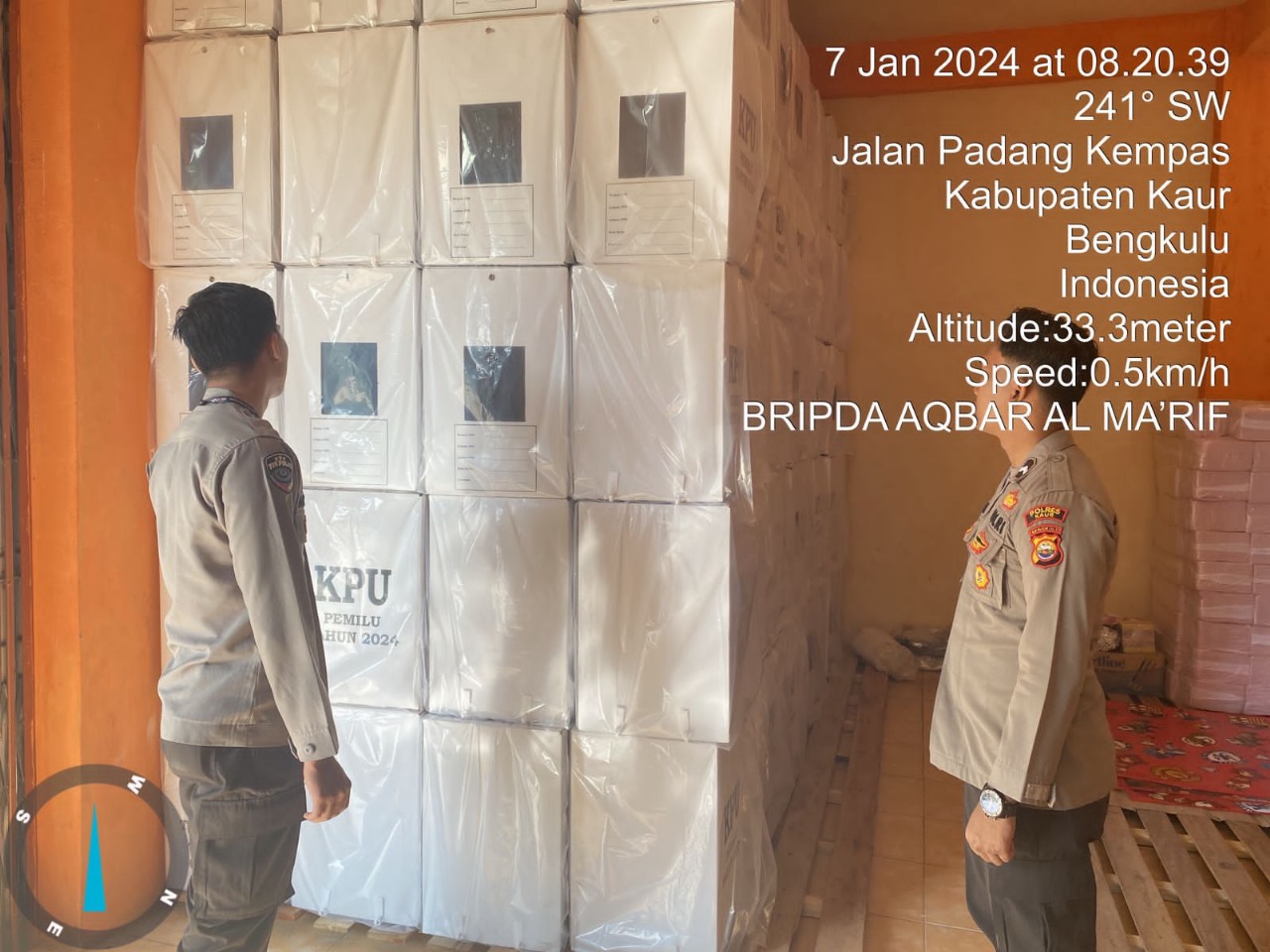 Kapolres Kaur AKBP Eko Budiman, S.I.K., M.I.K., M.Si., melalui Kasat Sabhara AKP Pratikto menjelaskan bahwa Kegiatan Personel Piket pengamanan di gudang Logistik KPU ini diantaranya melakukan pemeriksaan Pintu-pintu gudang logistik, Perelatan yang ada di dalam gudang logistik, pengecekan jumlah kotak suara yang ada di dalam gudang logistik KPU Kabupaten Kaur serta memantau masuk dan keluar nya tamu yang datang ke gudang logistik 1 KPU Kab. Kaur.”Personel juga memberikan arahan kepada tamu atau masyarakat yang melakukan tindakan mencurigakan dengan menerapkan sikap Tegas, Humanis dan selalu dalam sikap siaga terhadap Orang-orang /Tamu yang tidak dikenal atau dicurigai,” ungkap Kasat. Selain itu Personel piket pengamanan selalu siap siaga dan selalu menerapkan Body Sistem dan peka terhadap keadaan disekitar gudang dan sekitarnya, melaksanakan patroli secara berkala diseputaran gudang yang masih terdapat jalur pintu masuk, selain pintu masuk utama.Adapun personel yang melaksankan patroli kali ini yakni, Aiptu Eka Yusnar dan Aipda Moh. Nurkholis.