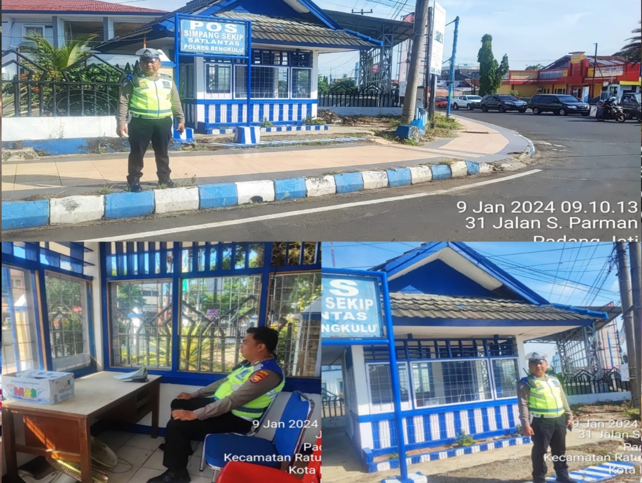 Bengkulu – Dalam rangka mencegah kejahatn 3C dan memantau arus lalin, Sat Lantas Polresta Bengkulu melaksanakan pemnatauan dan patroli di seputaran Pos Lantas Simpang Skip, Selasa (09/01/2024).