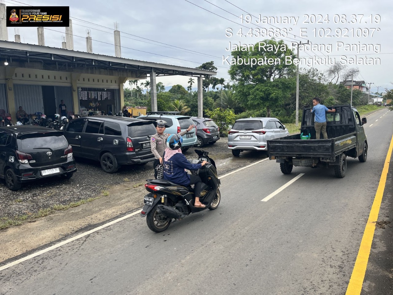 Bengkulu Selatan – Sat Lantas Polres Bengkulu Selatan Polda Bengkulu, dipimpin AKP Dendi Putra S.H., M.H., dan 6 personelnya melaksanakan Patroli presisi ke kantor KPU dan gudang KPU dan Bawaslu, serta Turlalin seputaran Kantor penyelenggara Pemilu Serentak Tahun 2024, adalah bentuk pelayanan Polri kepada masyarakat guna mewujudkan Kamseltibcar lantas selama tahapan Kampanye pemilu 2024, di Wilayah Hukum Polres Bengkulu Selatan Polda Bengkulu, pada Jumat (19/01/24). Kapolres Bengkulu Selatan AKBP Florentus Situngkir, S.I.K., melalui Kasat Lantas AKP Dendi Putra, S.H., M.H., mengatakan bahwa Patroli dan turlalin tersebut adalah merupakan salah satu bentuk pelayanan Polri terkhusus Sat Lantas kepada masyarakat di jalan disekitar perkantoran penyelenggara pemilu dan gudang logistik KPU Bengkulu Selatan, pemukiman dan Jalan raya, seperti yang dilaksanakan Personelsat Lantas Polres Bengkulu Selatan Polda Bengkulu. Dengan ditempatkan personel Polres Bengkulu Selatan didepan Kantor KPU dan gudang KPU dan Bawaslu sebagai penyelenggara Pemilu Serentak Tahun 2024 dan juga persimpangan serta di titik-titik keramaian serta daerah rawan kecelakaan dapat memberi rasa aman dan nyaman bagi warga masyarakat pengguna jalan yang sedang melakukan aktivitasnya di Wilayah Hukum Polres Bengkulu Selatan. Kasat Lantas Akp Dendi Putra S.H., M.H., menjelaskan bahwa “kegiatan ini adalah salah satu tugas personil yang tergabung dalam Operasi Mantab Brata Nala 2023-2024, Satgas III kamseltibcar lantas dan dengan adanya kegiatan ini diharapkan masyarakat dapat merasa aman dan nyaman dalam melaksanakan aktivitasnya, serta terjamin keamanannya serta terwujudnya Kamseltibcarlantas,” pungkasnya.
