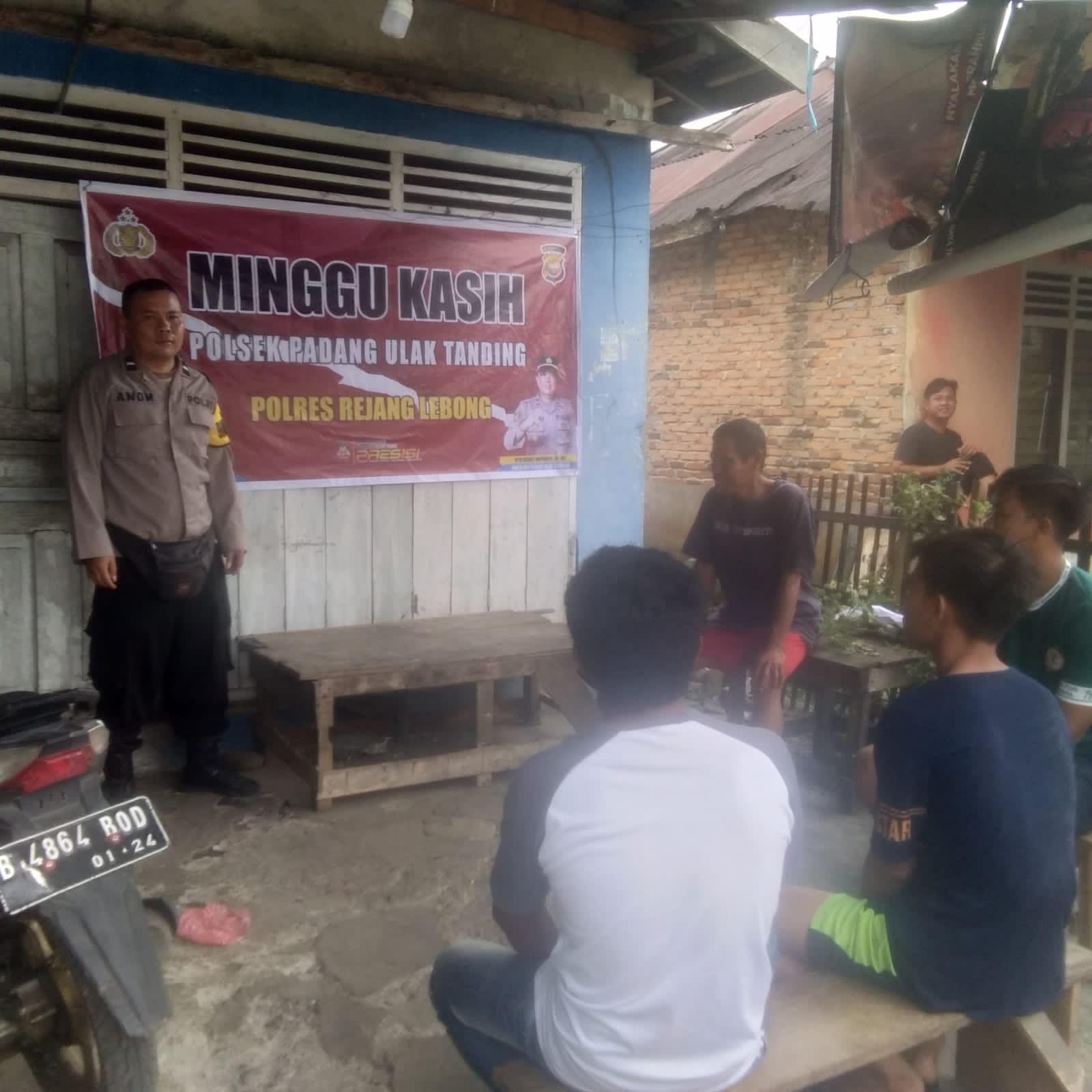 Dalam Kegiatan Ini Kapolsek PU. Tanding Bersama Personil Polsek PU. Tanding Melaksanakan Minggu Kasih Bersama babinkamtibmas Polsek Padang Ulak TandingKapolsek PU. Tanding IPTU HENGKY NOPRIANTO, SH. MH Mengungkapkan, Bahwa Kegiatan Minggu Kasih Bersama babinkamtibmas Polsek Padang Ulak Tanding adalah guna Apabila ada Masyarakat yang mengalami Tindak Pidana maupun terkait Harkamtibmas segera Laporkan melalui Hot Line Lapor Pak Kapolres atau Lapor Pak Kapolsek.Dalam Kegiatan Ini Kapolsek PU. Tanding Juga Menyampaikan Pesan – Pesan Kamtibmas Berupa Agar Peduli Dengan Lingkungan Serta Bersama-sama Menjaga Keamanan Lingkungan Dan Jangan Ragu Untuk Berkoordinasi Dengan Pihak Kepolisian, Karena Polsek Siap Membantu Dan Melayani Masyarakat.