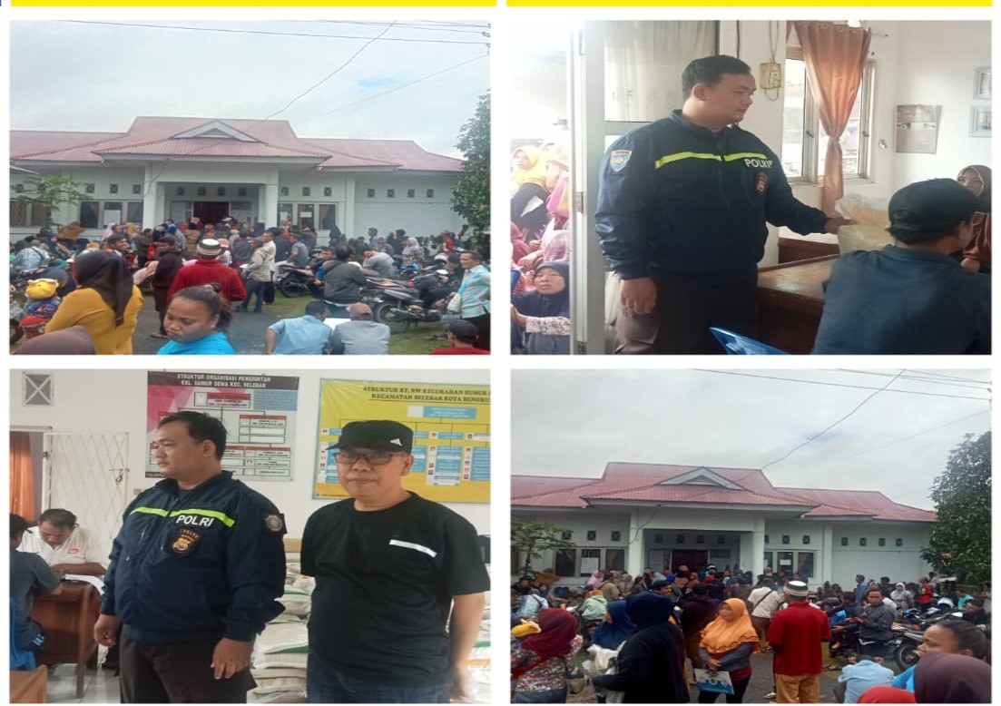 Bengkulu – Bhabinkamtibmas Kelurahan Sumur Dewa Polsek Selebar Polda Bengkulu, Brigpol Ricky Febrianto, melaksanakan monitoring kegiatan pembagian beras dari dinas ketahanan pangan Provinsi Bengkulu kepada warga yang berhak menerima di kelurahan Sumur Dewa Kota Bengkulu, Sabtu (03/1/2024).