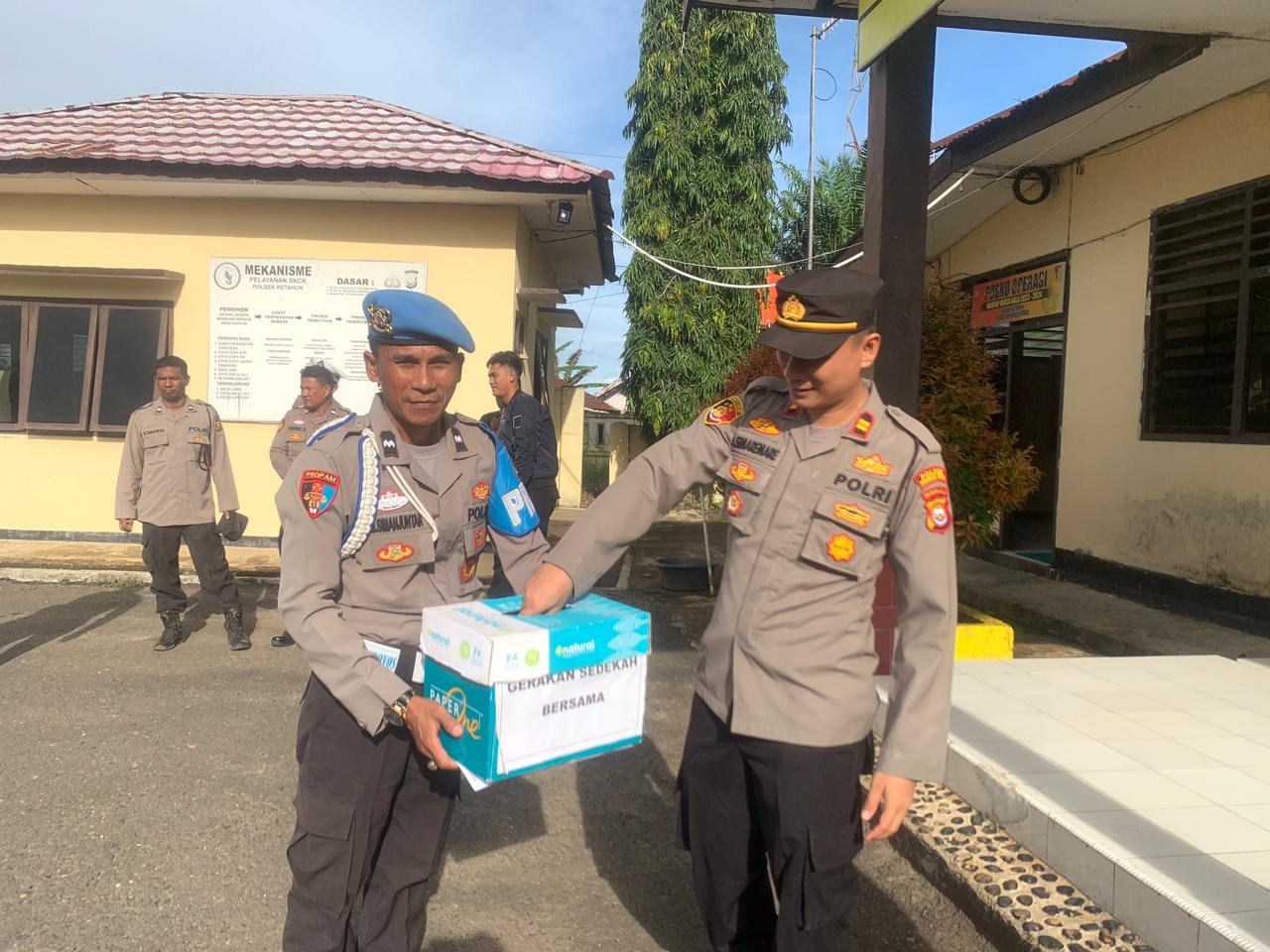 Bengkulu Utara – Personel polsek Ketahun Polres Bengkulu Utara Polda Bengkulu melaksanakan kegiatan rutin setiap hari Senin setelah apel pagi berupa sedekah bersama. Kegiatan tersebut dilakukan dengan harapan dapat membantu dan meringankan beban masyarakat kurang mampu, seperti yang dilakukan, Senin (05/02/2024).