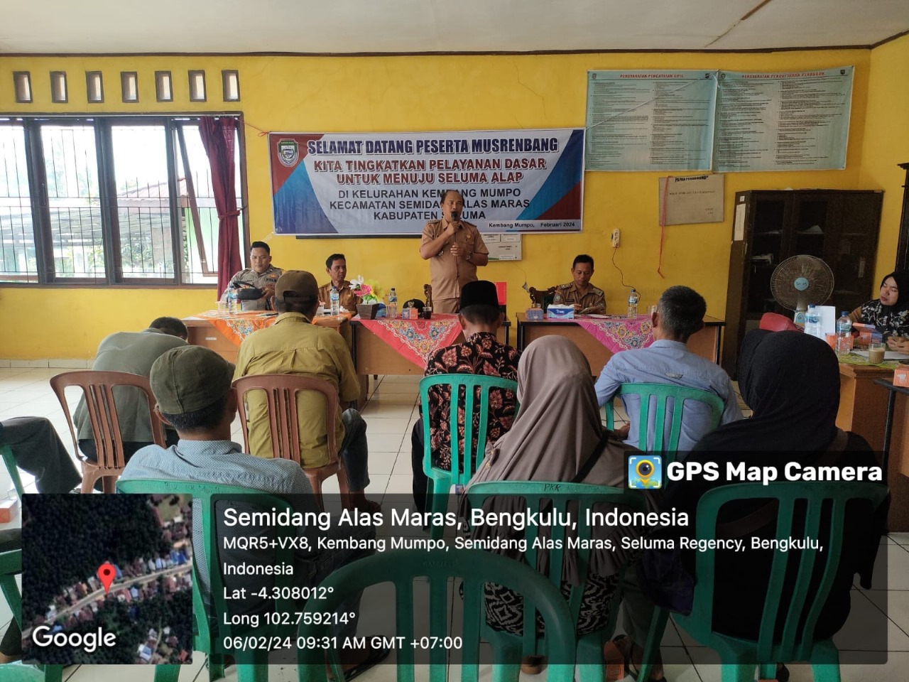 Seluma – Bhabinkamtibmas Polsek Semidang Alas Maras Polres Seluma polda Bengkulu, Briptu Rama Dhani menghadiri kegiatan musyawarah perencanaan pembangunan (Musrenbang) fisik dan nonfisik Tahun 2024 di Kelurahan Kembang Mumpo Kecamatan Semidang Alas Maras Kabupaten Seluma pada hari Selasa (06/02/2024) pukul 09.00 WIB s/d Selesai di Kantor Kelurahan Kembang Mumpo Kecamatan Semidang Alas Maras Kabupaten Seluma.