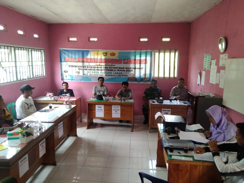 Kegiatan Pelatihan peningkatan kapasitas dan Kemampuan Linmas desa Padang Lebar bermaterikan Praktek Simulasi Linmas desa dan Linmas TPS pada masa pendistribusian Logistik dan pelaksanaan Pemungutan dan penghitungan perolehan Pemilu 2024 di tingkat TPS, Oleh Polsek dan petugas Kecamatan, serta Praktek / peragaan penanganan gangguan kamtibmas dan keos di lingkungan masyarakat dan Pada pelaksanaan Pemungutan dan Penghitungan perolehan Pemilu 2024 Babinsa Seginim.