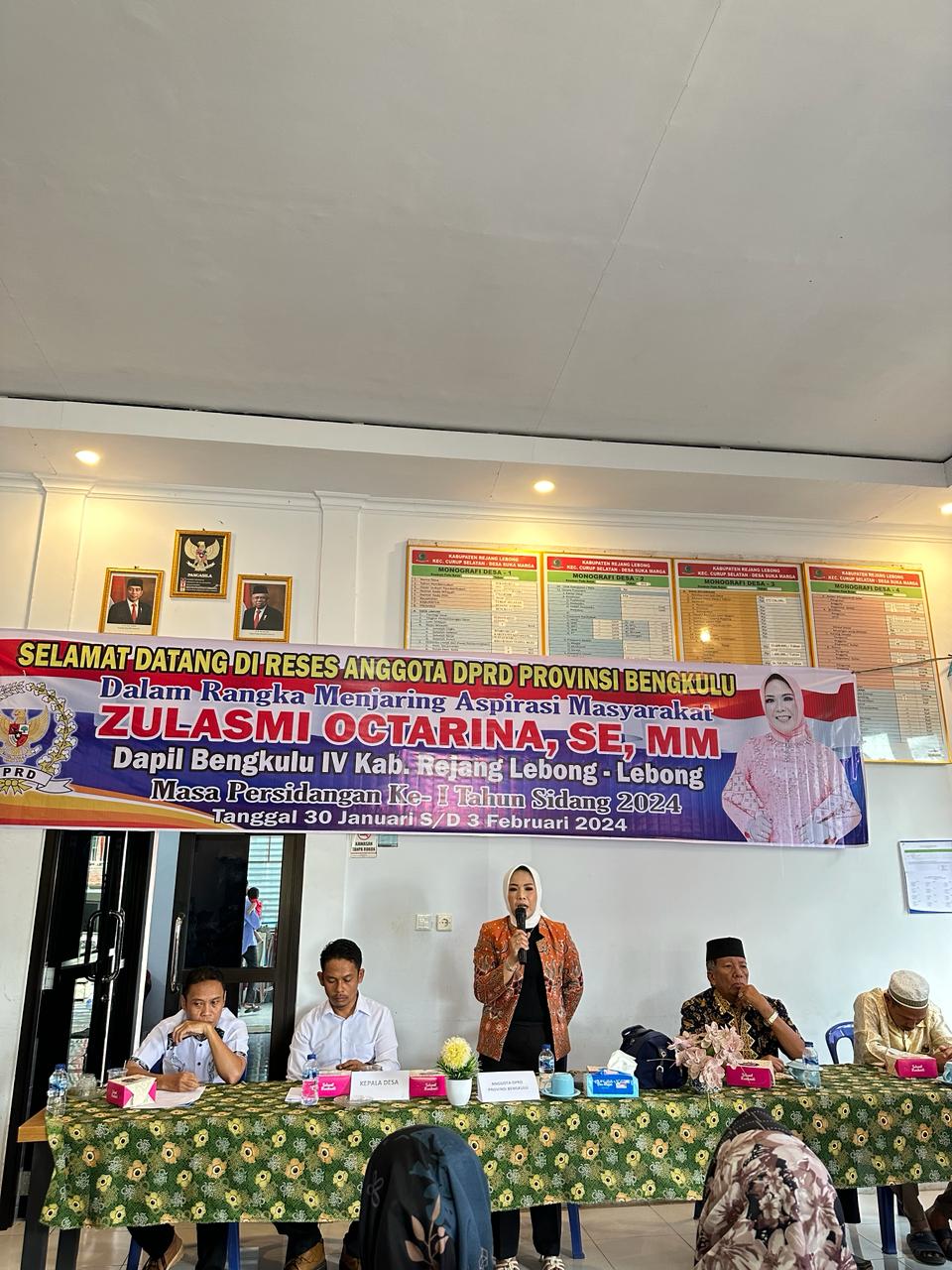 Bengkulu, Tintabangsa.com – Anggota Dewan Perwakilan Rakyat Daerah (DPRD) Provinsi Bengkulu, Zulasmi Octarina, SE, Mm, menggelar reses di Desa Suka Marga, Kecamatan Curup Selatan, Kabupaten Rejang Lebong.