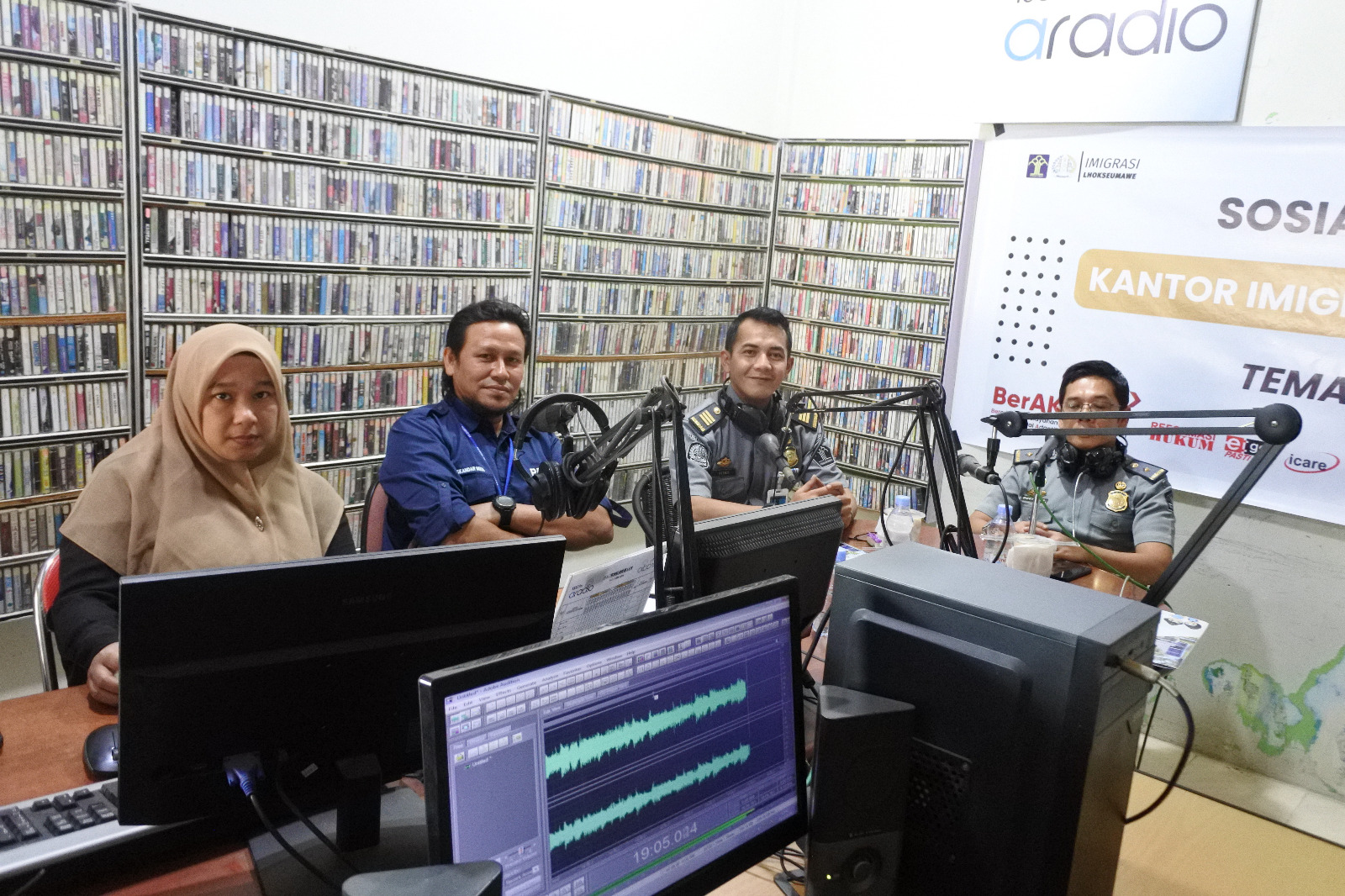 Lhokseumawe,Tintabangsa.com – Kepala Seksi Teknologi Informasi dan Komunikasi Keimigrasian, Izhar Rizki, bersama dengan Kepala Seksi Lalu Lintas dan Izin Tinggal Keimigrasian, Dicky Nasrullah Ronie, didampingi oleh Pegawai dari Seksi Tikkim, melaksanakan giat Sosialisasi Keimigrasian melalui media Radio di aradio 103.5 FM Kota Lhokseumawe, Selasa (20/02/2024)