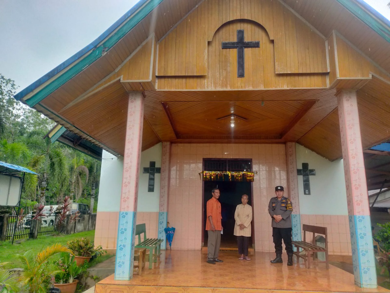 Personel Polsek Giri Mulya Polres Bengkulu Utara Polda Bengkulu Aipda Edi Yansyah, S.AP dan Bripka Anton Marpaung, S.H., melakukan pengamanan ibadah minggu di Gereja GKSBS Desa Giri Mulya dan Gereja GPDI Desa Wonoharjo pada