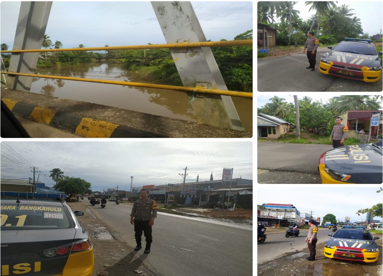 Petugas patroli juga memantau daerah Rawan Banjir di kecamatan Muara Bangkahulu.