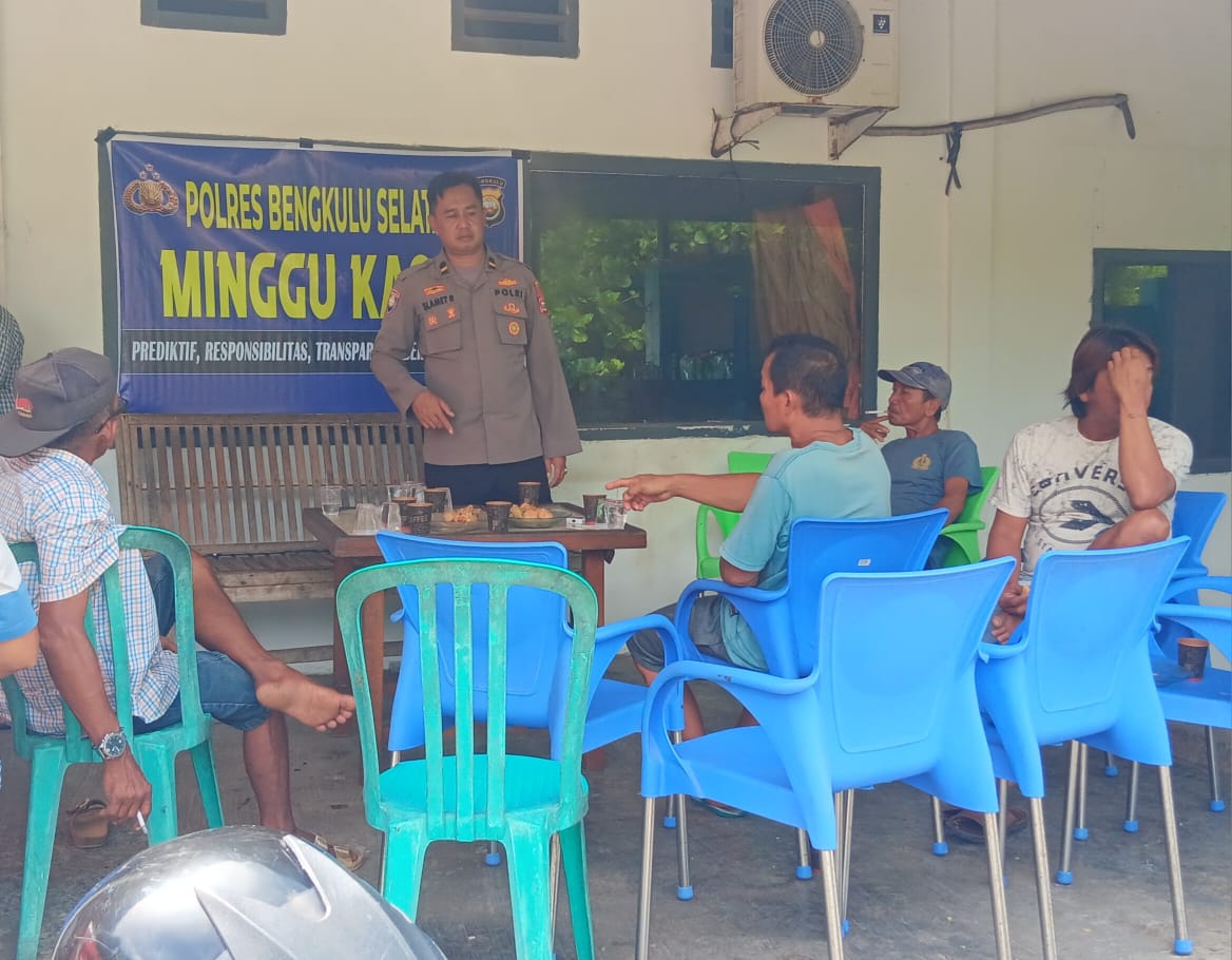 Bengkulu Selatan – Kapolres Bengkulu Selatan Polda Bengkulu AKBP Florentus Situngkir S.I.K., bersama Kasat Binmas Iptu Kusyadi S.H., M.Si., dan personilnya mengada kan kegiatan pertemuan dengan Tokoh Pemuda dan tokoh masyarakat dan warga masyarakat desa Palak Kecamatan Air Nipis Kabupaten Bengkulu Selatan bertajuk “Minggu Kasih ” guna mendengarkan keluhan dan aspirasi warga secara langsung, Minggu (10/03/24) Pagi.