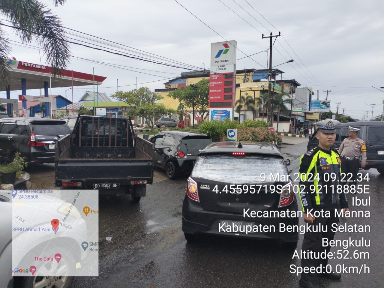 Hal tersebut dilakukan oleh personil Sat Lantas Polres Bengkulu Selatan Polda Bengkulu, Ipda Sudarminta bersama personil nya, Sabtu (09/03/24) dengan menyambangi dan mengatur lalu lintas di SPBU Jln A.Yani Ibul Manna untuk kelancaran pendistribusian BBM dan menjalin silaturahmi dengan warga masyarakat serta menyampaikan pesan-pesan Kamtibmas.