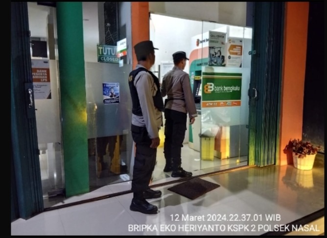 Kapolres Kaur AKBP Eko Budiman, S.I.K., M.I.K., M.Si., melalui Kapolsek Nasal AKP Pedi Setiawan, S.H., M.H., menjelaskan bahwa Giat Personil Polsek Nasal 3 (tiga) dilaksanakan Patroli Rutin dan Patroli Objek Vital dalam rangka memelihara Situasi Kamtibmas di Wilkum Polsek Nasal Untuk Antisipasi Aksi TP. 3C dan antisipasi Aksi Premanisme.Adapun sasaran Patroli Personel Polsek Nasal yakni tempat tempat yang dianggap rawan 3C dan premanisme di jalan lintas barat Kec. Nasal, Obyek-obyek Vital diwilayah Polsek Nasal, Perumahan Masyarakat di Kec. Nasal Kab. Kaur, Jalan Lintas Barat, Bengkulu – Lampung, Objek Vital Puskesmas muara Nasal, Pertashop Batu Lungun dan Kantor PT. CBS Nasal.Personil Polsek Nasal melaksanakan patroli di sepanjang jalur lintas Barat Bengkulu – Lampung.melakukan pengecekan terhadap obyek obyek vital yang ada di wilayah hukum Polsek Nasal.Memonitor daerah yang dianggap rawan terjadi tindak pidana 3C (Curat, Curas dan Curanmor) serta Premanisme.Patroli dan Monitoring di Objek Vital Kantor bank BPD CAB.Nasal, Pertashop Batu Lungun dan Kantor PT.CBS Nasal  dan Monitoring Situasi Kamtibmas di Wilkum Polsek Nasal guna antisipasi kejadian yang tidak diinginkan.Memberikan Himbauan kepada Petugas Pertashop agar selalu berhati-hati dan Waspada serta apabila pada saat kendaraan melakukan pengian BBM agar mematikan mesin kendaraannya.Memberikan Himbauan Kepada Satpam Bank BPD Cab.Nasal agar senantiasa melakukan Pengecekan ATM pada jam – jam rawan dan melapor kan apabila ada kejadian kepihak Polsek Nasal dan serta memberikan kepada Security PT.CBS agar senantiasa aktip melakukan pengontrolan keseputaran kantor ATM BRI guna antisipasi kejadian yang tidak diinginkan.
