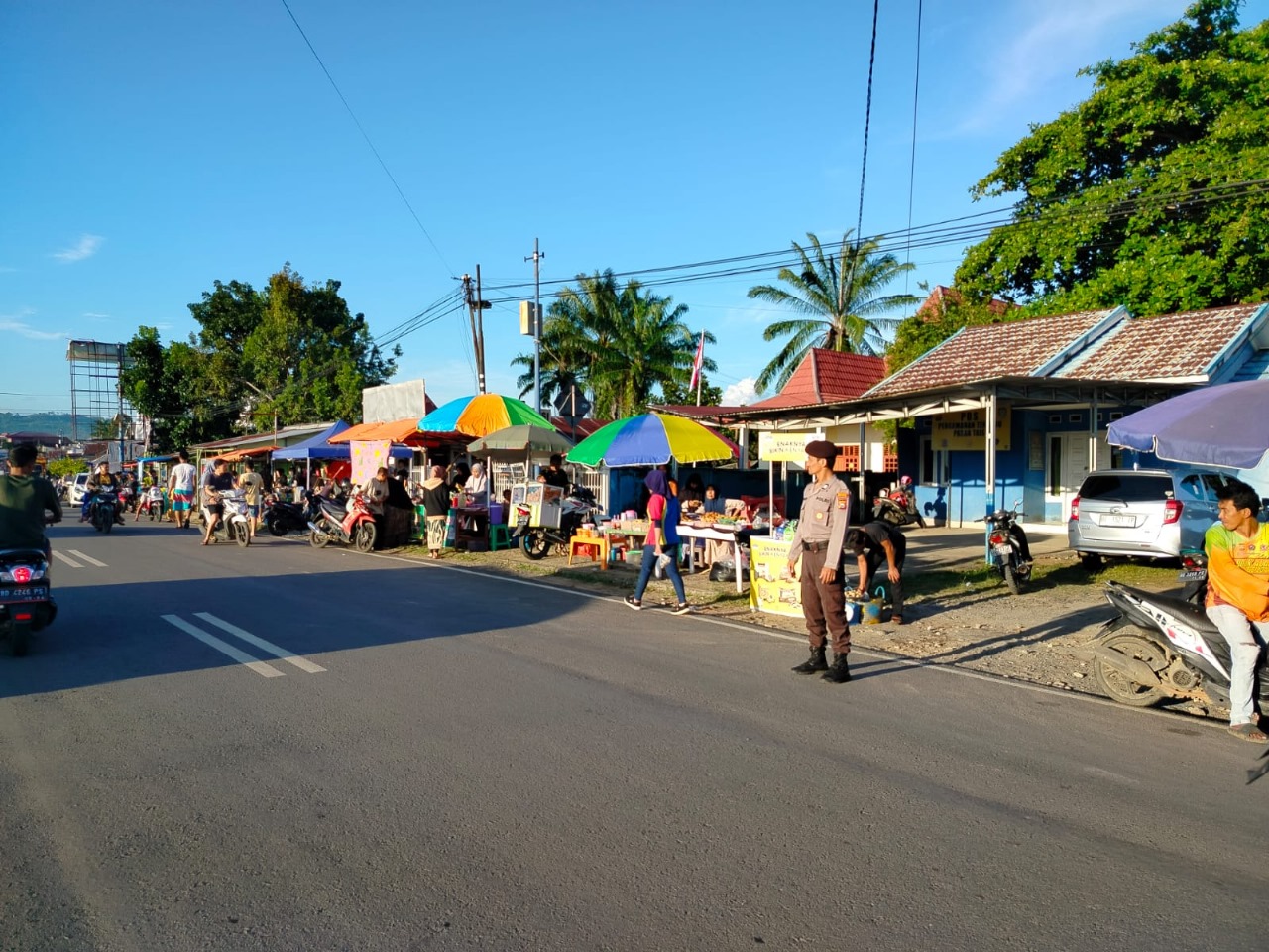Anggota Patroli Sat Samapta Polres Seluma melaksanakan pengaturan lalu lintas dikelurahan Pasar Tais dipasar kaget penjualan Takjil di Alun-alun Tais untuk berbuka Puasa.