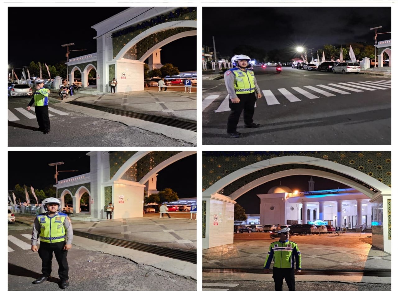 Personel Sat Lantas Patroli Pengamanan Sholat Isya dan Tarawih di Masjid At-Taqwa