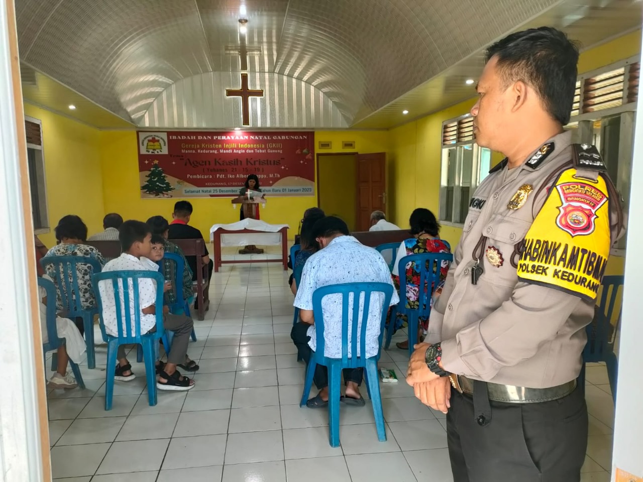 Bhabinkamtibmas Polsek Kedurang Laksanakan Pengamanan di Gereja Ciptakan Kenyamanan Beribadah