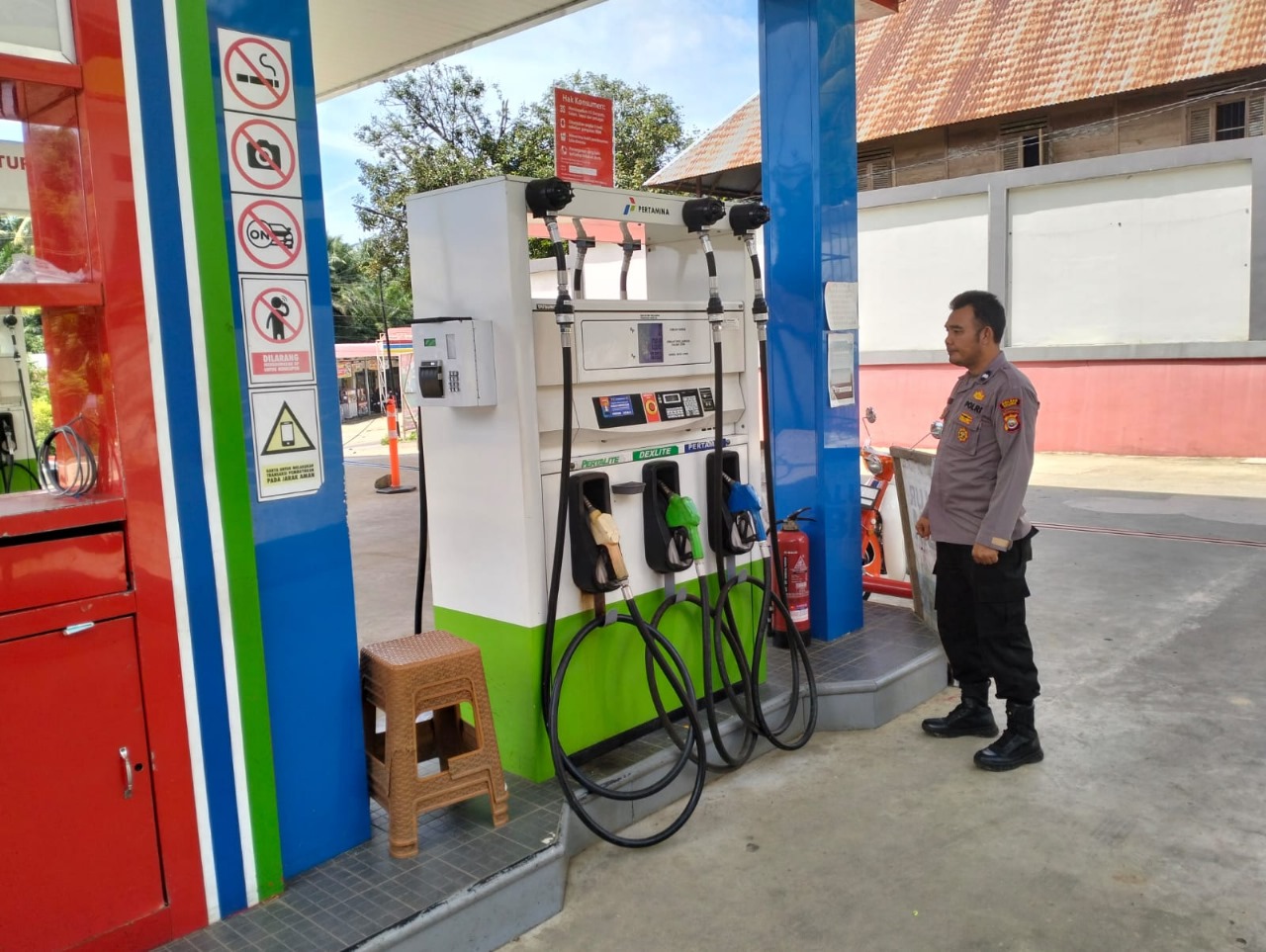 PersonEl Polsek Talo melaksanakan patroli dan pengecekan antrian kendaraan dan stok BBM di SPBU Masmambang Talo.
