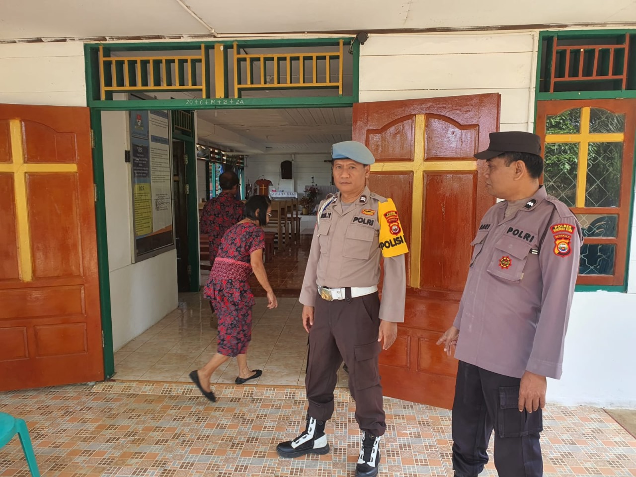 Personil Polsek Giri Mulya di pimpin Kanit Provos Polsek Giri Mulya Aiptu Roni Yulianto bersama SPK I Aipda Hariyono dan Bapulbaket Briptu Bayu Adi Pratama Melaksanakan pengamanan Ibadah Minggu Paskah di Gereja Santa Maria Desa Wonoharjo di Wilayah Hukum Polsek Giri Mulya.
