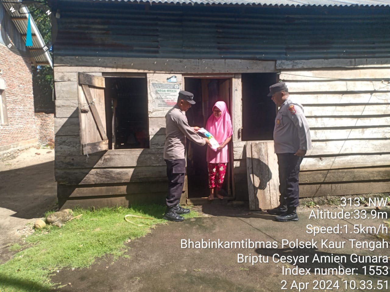 Kaur – Polsek Kaur Tengah Polres Kaur Polda Bengkulu, melaksanakan kegiatan Selasa berbagi kepada warga yang kurang mampu bertempat di Desa Cahaya Batin Kecamatan Semidang Gumay Kabupaten Kaur, Selasa, (02/04/2024) Sekira Pukul 1o.00 WIB.