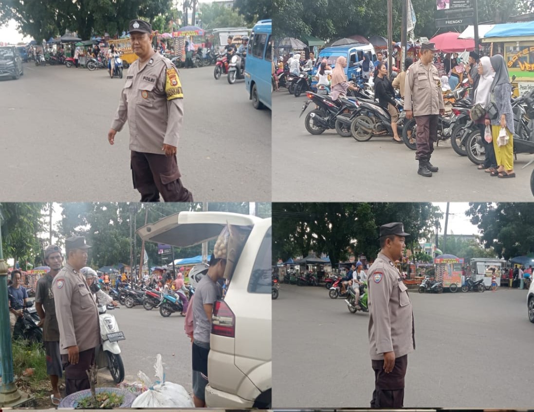 Bengkulu – Personel Polsek Kampung Melayu Polresta Bengkulu Polda Bengkulu, Aiptu Ujang Risuldi dan Briptu Riki Sepratama melaksankan Pengamanan dan Pengaturan Arus Lalu Lintas Pasar Ramadhan di Wilkum Polsek Kampung Melayu, Kamis (04/04/2024)