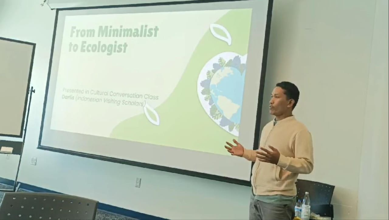Presentasi tersebut berlangsung di kelas mingguan Cultural Conversation Class yang dilaksanakan oleh International Students and Scholars (ISS) UCR tepat hari Selasa, 16 April 2024 waktu California.Kegiatan tersebut merupakan program penguatan bahasa dan sharing budaya seluruh mahasiswa non-Amerika dari seluruh dunia, seperti German, Rusia, Mexico, Iran, Korea, Jepang, China, India dan Indonesia.Dalam kesempatan tersebut, Darlis yang juga Dosen UIN Datokarama Palu memaparkan kondisi ril kerusakan lingkungan di Indonesia. Ia menyatakan bahwa salah satu sebab kerusakan tersebut adalah gaya hidup konsumerisme dan materialisme.Pada konteks itu, pembina pesantren Anwarul Quran Palu tersebut menegaskan pentingnya minimalism sebagai gaya hidup di tengah krisis ekologis dewasa ini.Menurutnya, minimalism merupakan pandangan dunia dan gaya hidup yang menekankan kesederhanaan (simplicity) dan keberfungsian (fungsionality). Minimalism, tambahnya, tidak hanya ekologis, tapi juga merupakan cara untuk mencapai kebahagian (happiness) dan kemerdekaan (freedom) serta kemelekatan (attachment) dengan diri dan keluarga.Dalam momen tersebut, Darlis yang sedang menulis Disertasi tentang Manusia Ekologis juga menampilkan praktek dan filosofi Kamase’-kamase sebagai salah satu praktek hidup minimalis masyarakat Ammatoa Kajang, Sulawesi Selatan.Di akhir presentasi, Mrs.Candace sebegai fasilitator sangat mengapresiasi penampilan dan tema yang dibahas oleh Darlis. Di saat yang sama, mahasiswa dari German dan Korea sangat penasaran dengan budaya Kamase’-kamase’ Ammatoa Suku Kajang tersebut dalam konteks kehidupan modern saat ini.