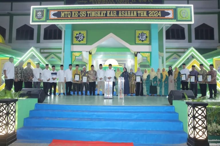 Asahan tintabangsa.com – Setelah digelar selama 7 hari, yakni sejak hari Rabu (24/04/2024), maka gelaran Musabaqah Tilawatil Quran (MTQ) ke-55 Tingkat Kabupaten Asahan yang digelar di Gedung Tahfidz Masjid Agung H. Achmad Bakrie Kisaran dan Asahan Expo dalam Rangka Hari Jadi ke-78 Tahun 2024 Kabupaten Asahan di Alun-Alun Rambate Rata Raya Kisaran, memasuki akhir penyelenggaraannya, yakni Selasa (30/04/2024) malam. Gelaran akbar tahunan tersebut resmi ditutup oleh Wakil Bupati Asahan Taufik Zainal Abidin Siregar, S. Sos, M. Si.