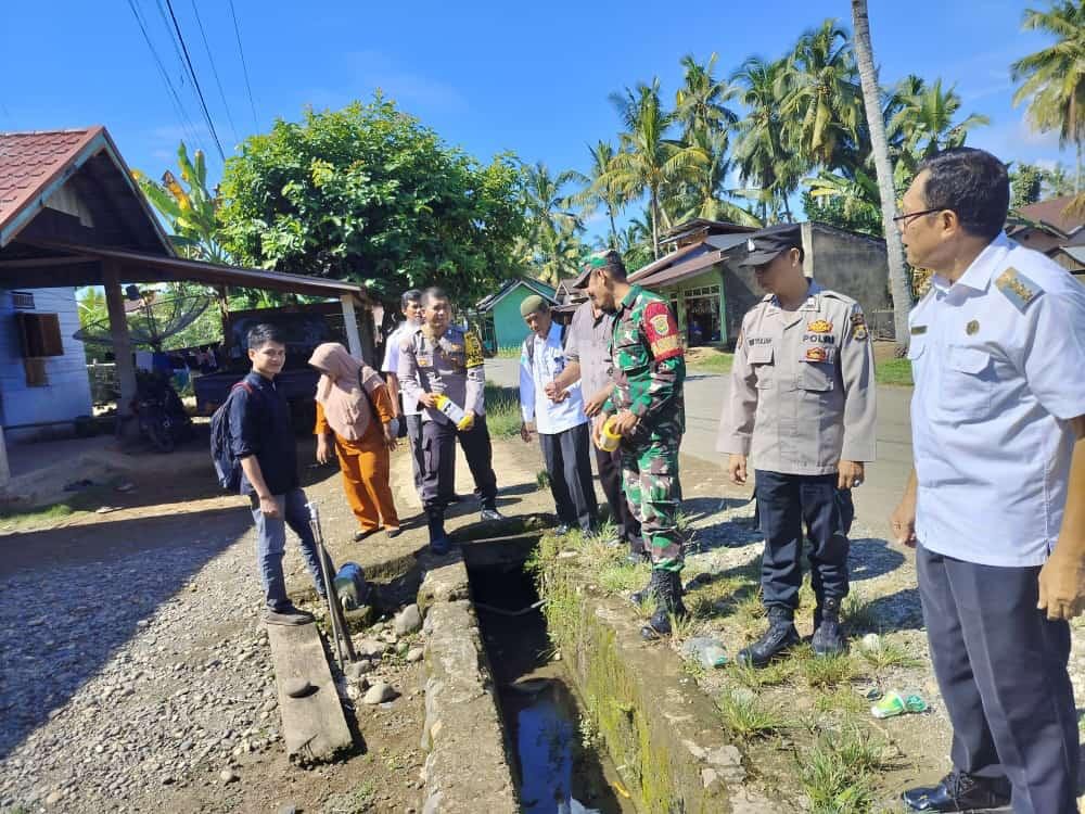 Mukomuko – Dalam mengantisipasi penyakit demam berdarah, Personel Polsek Teras Terunjam, Polres Mukomuko bersama TNI, Camat Selagan Raya, Kepala Puskesmas Selagan Raya, Kepala Desa Sungai Gading, Sungai Jerinjing dan Sungai Ipuh, Ketua BPD, Pedamping Desa, Perangkat Desa dan petugas kesehatan lainnya melakukan penaburan bubuk abate pada saluran serta genangan air yang terdapat di sekitar rumah Warga atau pinggir jalan desa.