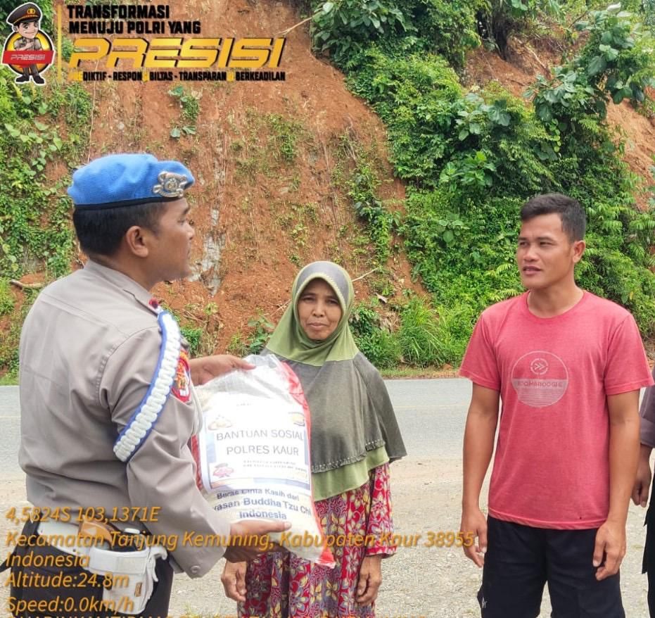 Kaur – Polsek Tanjung Kemuning Polres Kaur Polda Bengkulu, melaksanakan kegiatan Bakti sosial dengan membagikan bantuan sembako berupa beras 5 Kg kepada masyarakat yang membutuhkan di Desa Tanjung Aur Kecamatan Tanjung Kemuning Kabupaten Kaur, Selasa, (14/05/2024) Sekira Pukul 10.00 WIB.